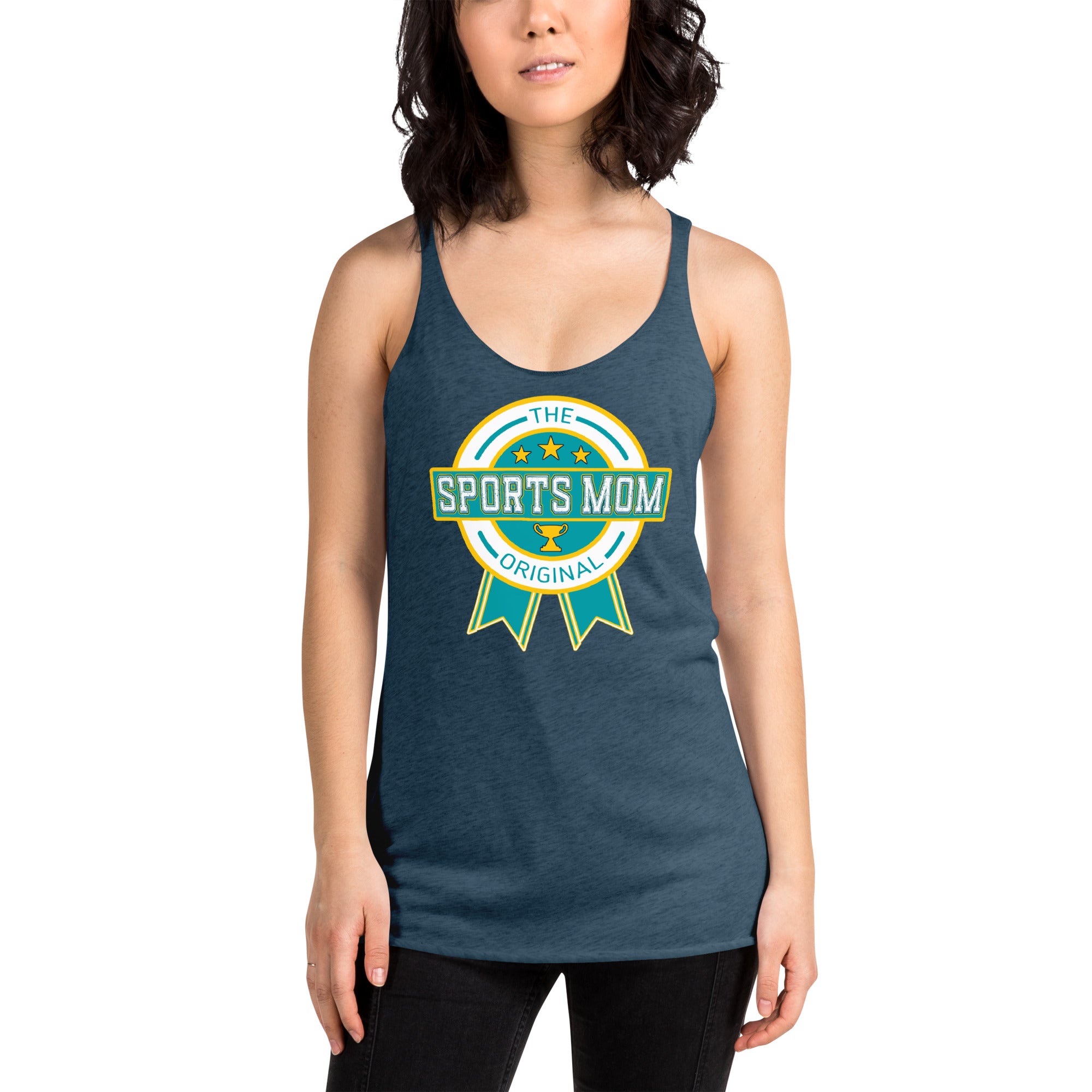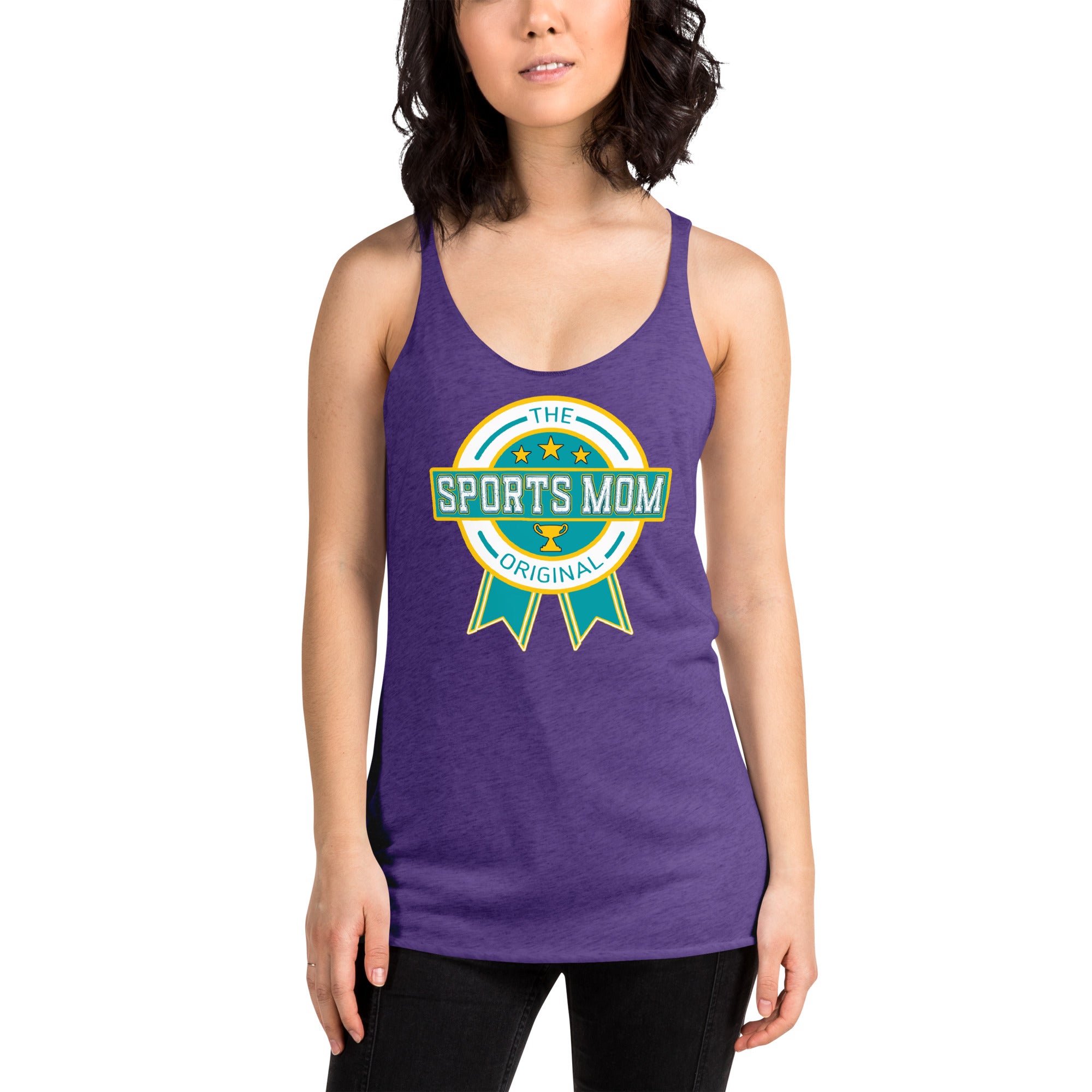 This racerback tank is soft, lightweight, and form-fitting with a flattering cut and raw edge seams for an edgy touch. Perfect to keep the hot weather Sports Mom's cool on the sidelines, for the Mom's who play their own sports, or just to set the Style Bar!